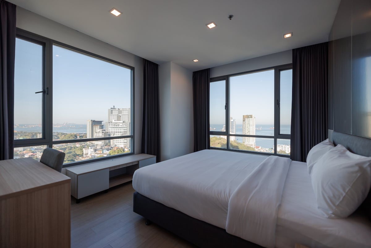 Welcome to this serene and stylish 1-bedroom apartment at The Zea, a luxurious beachfront condominium in Sri Racha. Designed with a modern, minimalist "Zen" vibe, our space is a peaceful retreat with breathtaking panoramic sea views. Perfect for a relaxing weekend getaway or a long-term business trip, you’ll find everything you need for a comfortable stay. Building Amenities Luxury on-site: Infinity pool, Japanese onsen, sauna, a modern gym, and a peaceful rooftop garden.