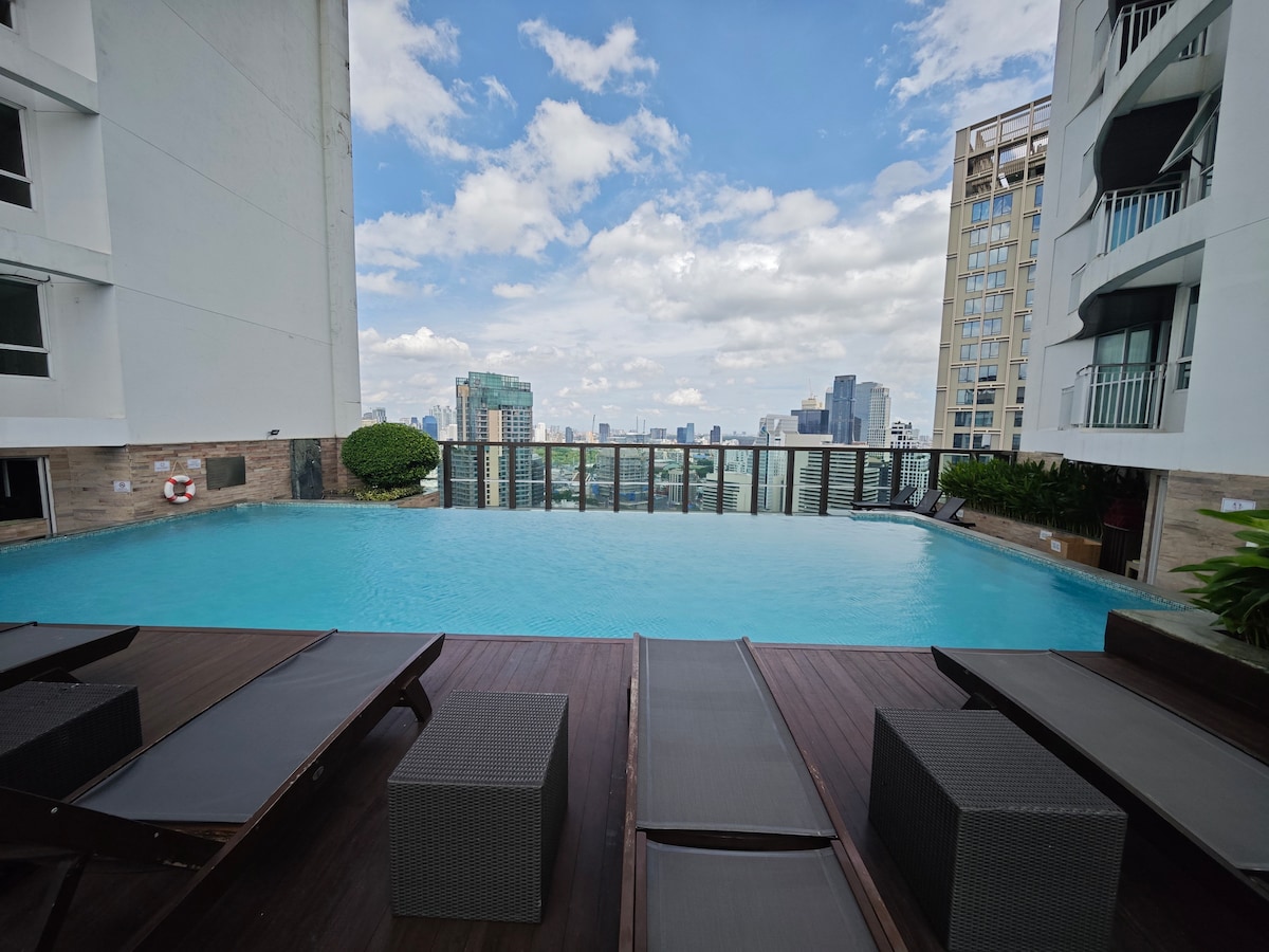 Stay in a modern condo with an unbeatable highlight: a rooftop infinity pool on the 37 floor, where you can swim above the skyline and enjoy breathtaking views of Bangkok. This residence also features: • Stylish Clubhouse with lounge areas • Comfortable co-working space for remote work • Fully equipped fitness center & relaxing sauna • Rooftop deck with sunbeds for city vibes Perfect for couples, digital nomads, and travelers who want both comfort and excitement in Bangkok