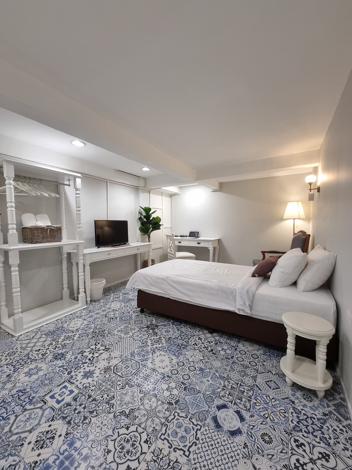 The Superior Double Room fits 2 guests with a queen-size bed and a 5-star hotel–quality mattress. Enjoy modern, minimalist design with air conditioning, flat-screen TV, refrigerator, writing desk, and free high-speed Wi-Fi. Located in a quiet local area, just a 15-minute walk from MBK and Siam Center — perfect for travelers seeking comfort, value, and convenience in central Bangkok.
