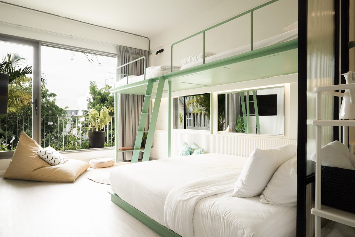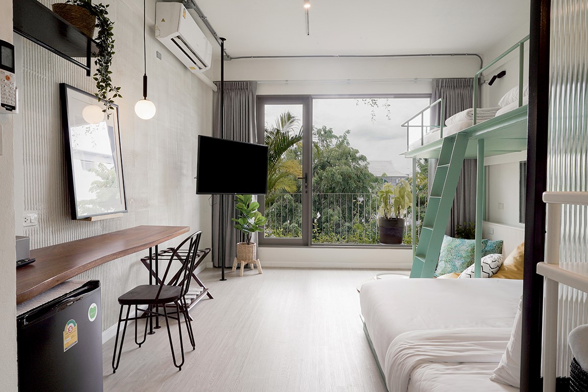 宽敞的绿色简约套房,适合暹罗324团体入住