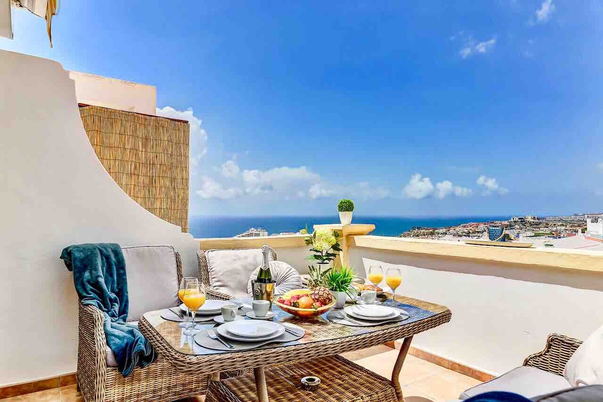 Peaceful accommodation for a relaxed holiday with an amazing ocean and garden view. The apartment is located in 15 min from Airport South and within walking distance of the ocean and close to the main infrastructure of Palm Mar. There are nearby supermarkets, bars on the ocean, restaurants of different cuisines, gym, Yoga&Pilates studio, children's playground. From the beach at Palm Mar you can take an amazing kayaking trip to a mussel farm and cliffs where dolphins and turtles live.