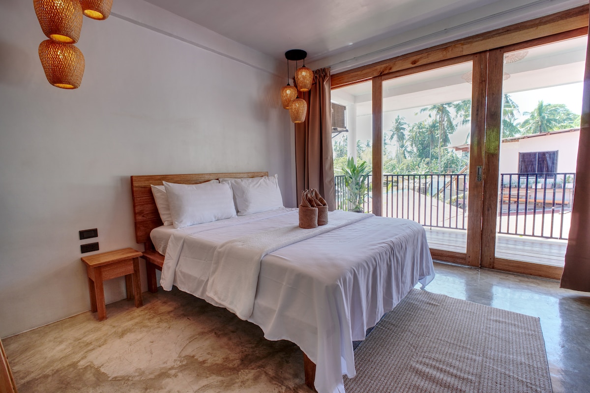 This second story luxury apartment overlooks Burgos Bays premier surf breaks .Equipped with your own private bathroom ,kitchen,king size bed ,air conditioner ,smart TV ,sound bar extra beach towels and star link internet. Enjoy FREE EXPRESSO on the shared 3rd floor rooftop its nothing short of spectacular. You can relax in the loft net ,do yoga or workout ,or just chill and watch the fisherman ,surfers and beach goers do there thing . Villa Prana is instergramable and bespoke by design.