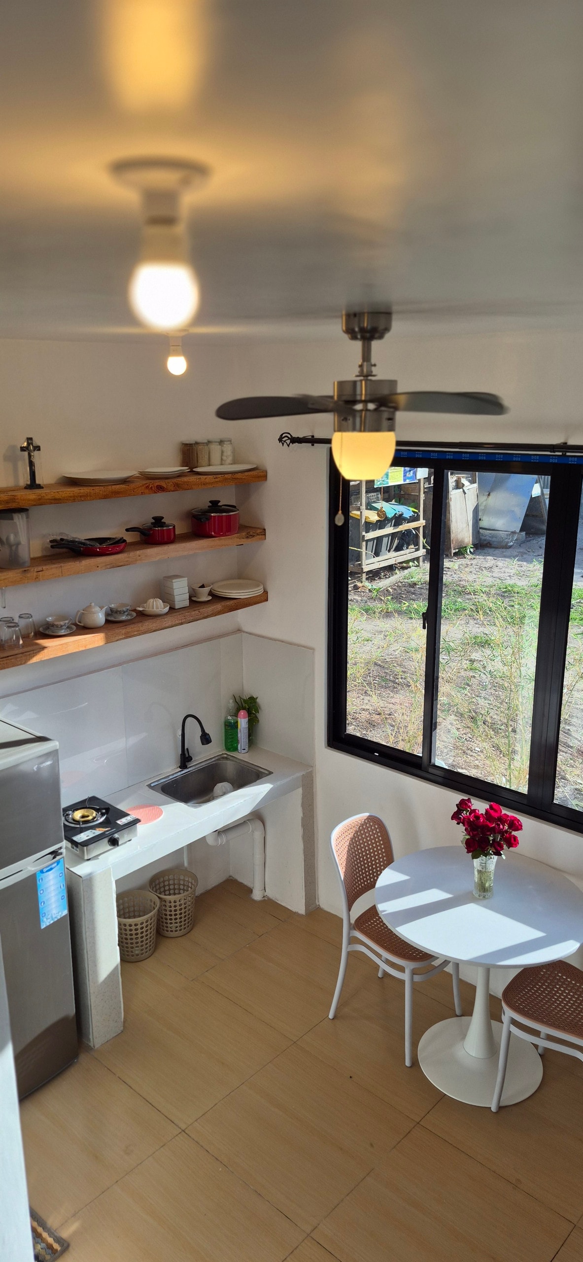 Shaded and quiet, this solar-powered Tinyvilla is perfect for working outside in the afternoon breeze. Set on a peaceful hilltop surrounded by greenery, just 15 minutes from General Luna and close to the island’s best surf spots. A true escape in nature. Stunning sunrise views over the hills and magical fireflies at night. We have three unique Tinyvillas on the same peaceful property—feel free to check our profile to explore the others or book together for a small group.