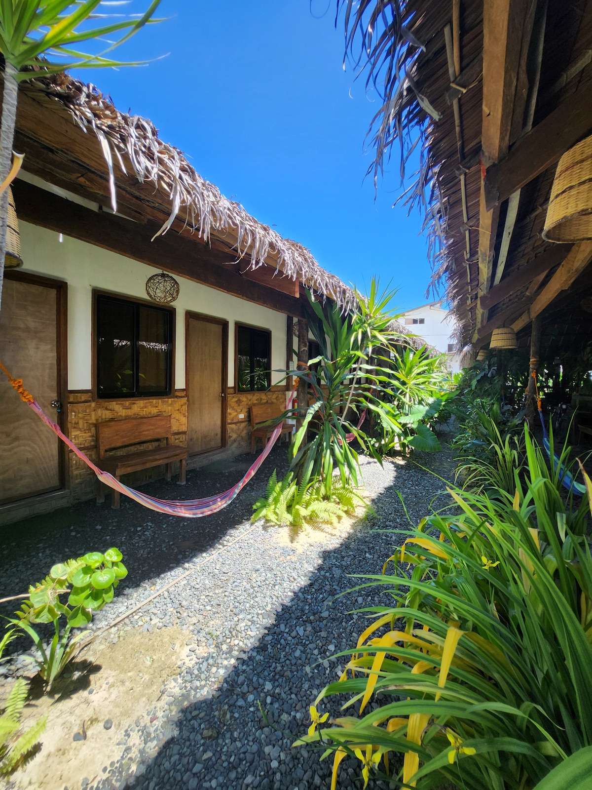 ★ 5-min drive from center • 10-min walk to beach ★ For couples who want a quiet place in the island. Can accommodate 2 up to 3 guests. You may cook for FREE! Amenities: ✓ Air-con room ✓ FREE Starlink Wi-Fi (up to 200 Mbps) ✓ Attached private toilet with hot shower ✓ 1 double bed, floor mattress for 3rd guest ✓ Towels, pillows, bedsheets ✓ Hammocks ✓ FREE use of kitchen ✓ FREE drinking water ✓ Board games! We offer: ✓ Breakfast ✓ Airport transfer ✓ Tour packages ✓ Van and motorbike rentals