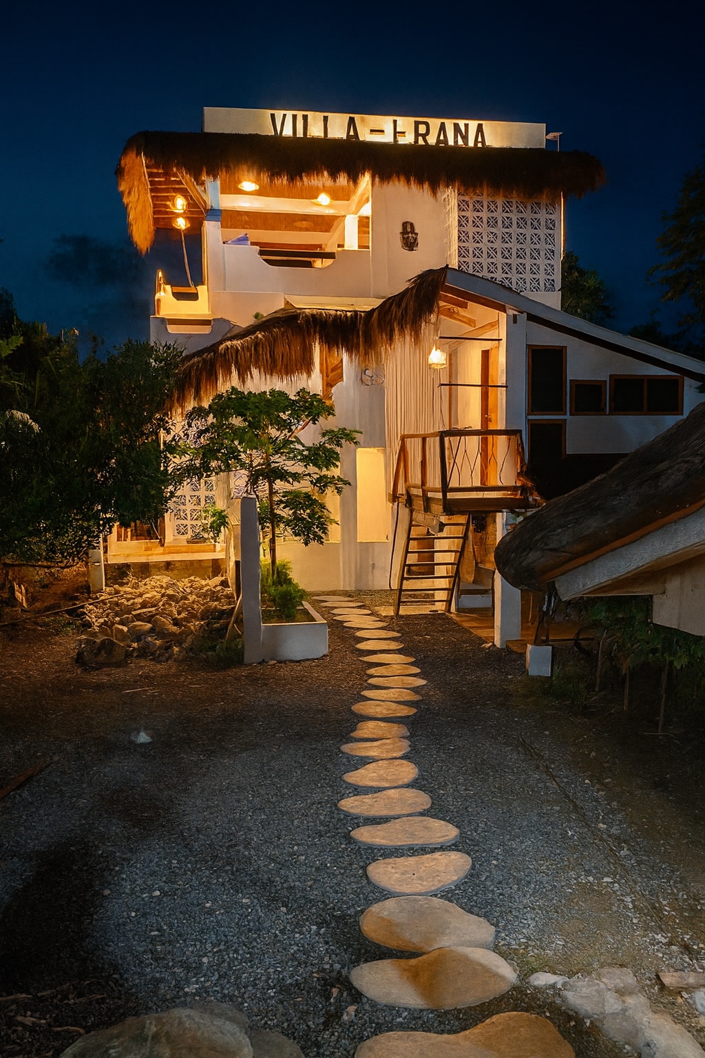 A fusion of traditional Filipino with modern elegance, Bayay Dhyana is an eco-focused beachfront home designed for indulgence. The Villa features a full-service staff, including a concierge available from 7:00 a.m. to 7:00 p.m. (flexible upon request). We comfortably accommodate up to 12 people between 3 ensuite bedrooms, a fully equipped kitchen, and expansive garden space, including a pool, volleyball/badminton court, fire pit, and more. Extra twin beds are available upon request.
