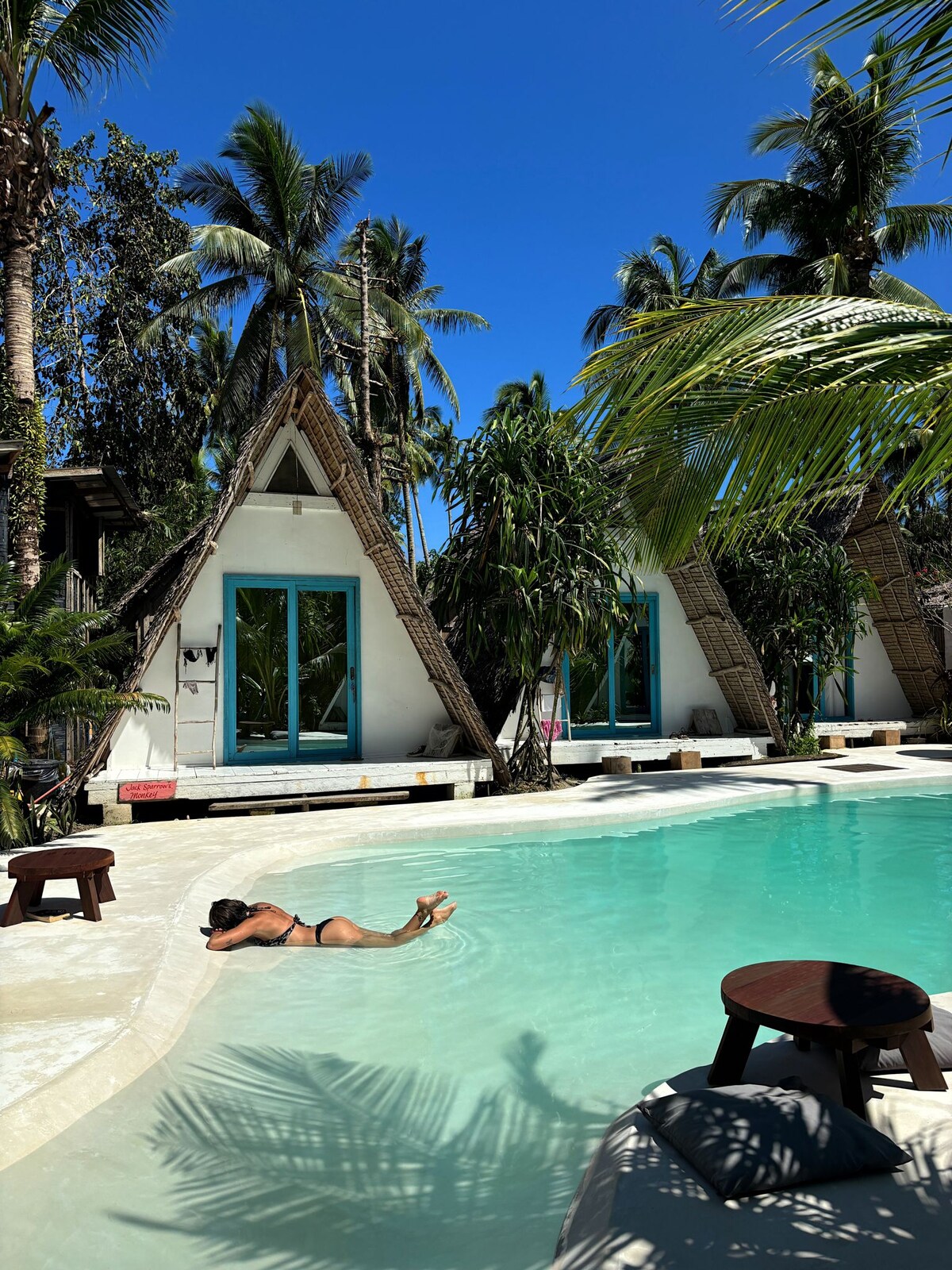Located in a very quiet area, ideal for a relaxing holiday away, 50 meters from the beach, surrounding area still with a local, laid back fisherman village vibe, a paddle away from a couple of surfing spots good for beginners but also for advanced surfers and a 10 minutes boat ride to the famous cloud 9 break, 25 minutes bike ride to General Luna if you feel like a bit of fiesta...