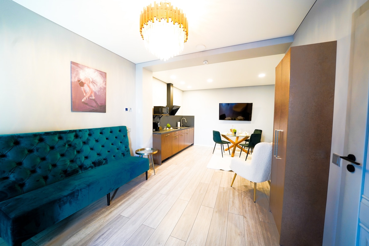 Už 1km nuo Šiaulių centro įsikūrusioje apgyvendinimo įstaigoje "Chic Residences" veikia nemokamas belaidis internetas.Viešnages metu galėsite naudotis virtuve su šaldytuvu,mikrobangų krosnele,skalbimo mašina ir virykle.Self Check in,kodines spynos,viskas daroma nuotoliniu budu.Stilingai praleiskite laiką šiame centre esančiame būste.
