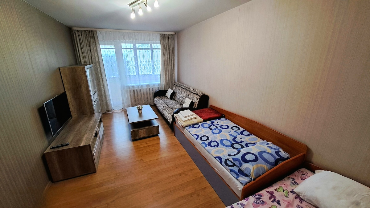 Cozy apartment (42sq.m.) close to the central part of the city. 10-15min walk to train or bus stations, city boulevard, bicycle museum, easily reached all other parts of the city. The apartment is well equipped -TV, wifi, hair dryer, iron, washing machine, big fridge, kettle. You will also find clean linen and bedding, shampoo, soap, shower gel, towels, dishes, glasses - so you can comfortably spend the days here.