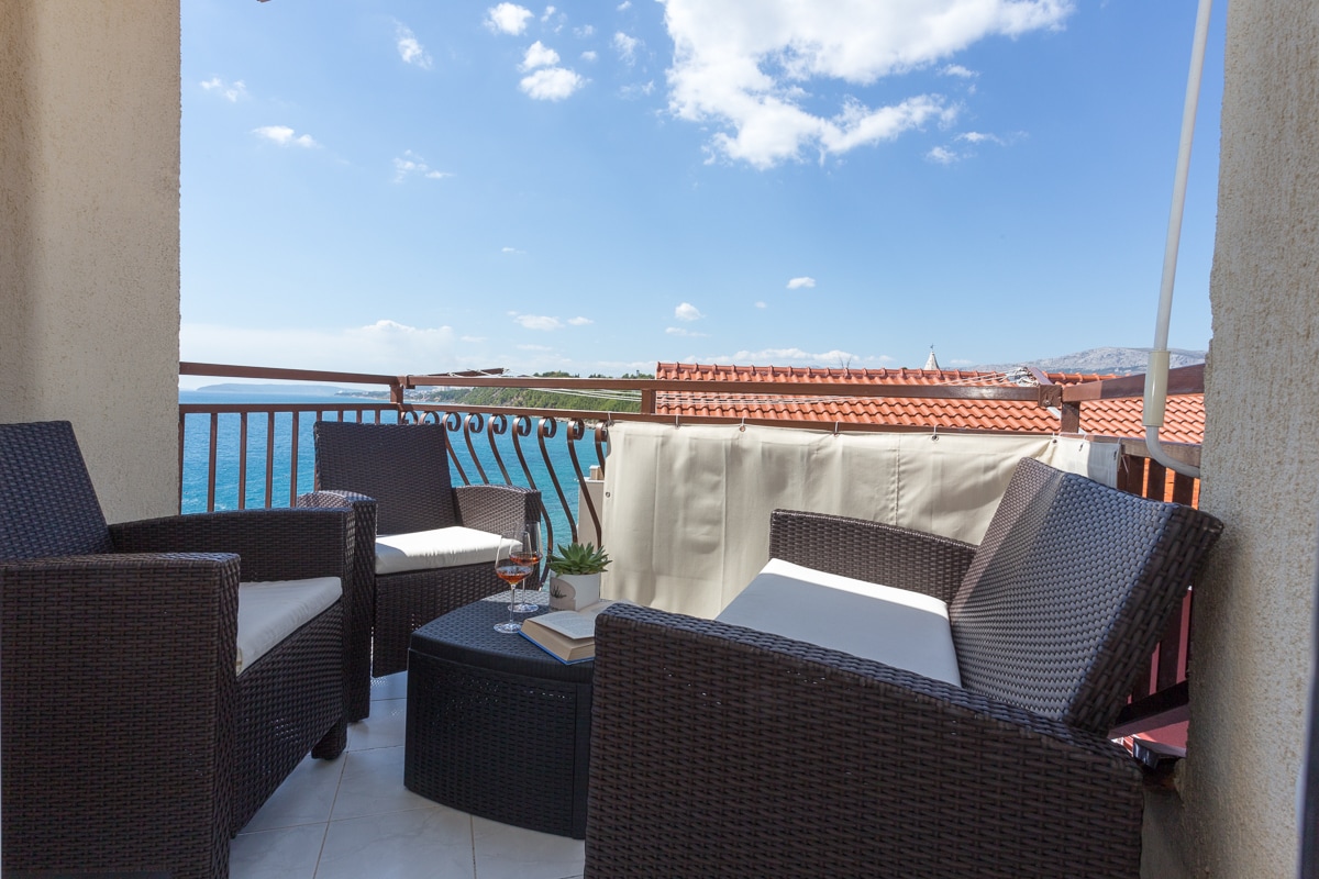 Apartment no 1 is our two floor apartment. Kitchen with dining area, Living room are on first floor among with spacious terrace where you can enjoy sea view. On second floor are two bedrooms and big bathroom. Modern and child friendly apartment is everything you need for your pleasant holidays.