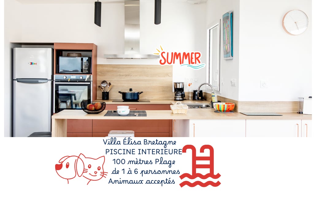 Imaginez-vous à 100 m des plages, en Bretagne, près de Roscoff, dans une villa neuve et lumineuse… Les enfants rient dans la piscine tandis que vous savourez un cocktail sur la terrasse face à l’océan et aux îles. Un rêve ? À Sibiril, la Villa Elisa Bretagne, née en 2023, est prête à le réaliser. Conçue pour accueillir jusqu’à 7 personnes, cette villa moderne au confort raffiné – dotée d’une piscine intérieure partagée avec la Villa Azénor – vous ouvre ses portes pour des vacances inoubliables.