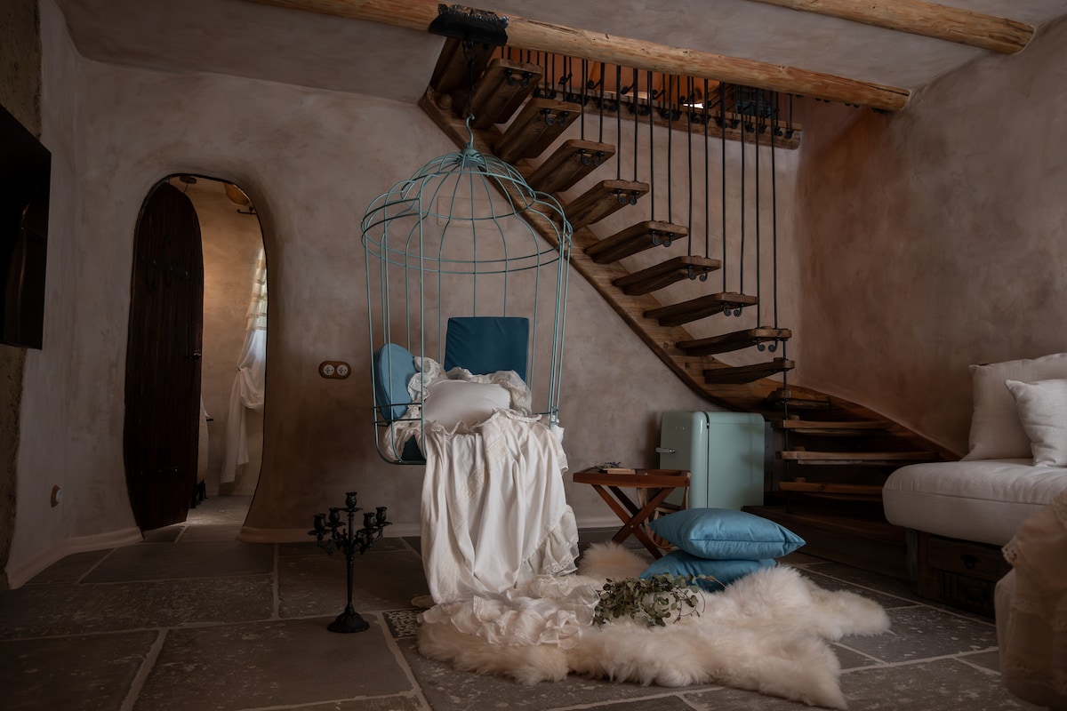 Porumbacu treehouse is the perfect place for a vacation, immersed in a small forest right in the heart of Porumbacu, a mountain village in Transylvania. Two rivers cross the property and you will wake up very day in a deep green landscape. Escape from the busy weekdays life and find the relaxing and quiet way of living. In addition, in the front yard there is our Transylvanian guesthouse where you will find other facilities for a pleasant stay: fully equipped kitchen, wifi barbecue, kiosk, etc.