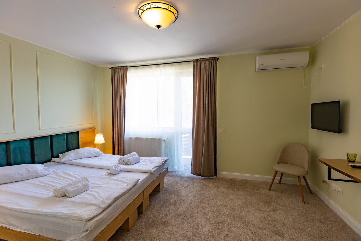 Camera dubla cu pat matrimonial si baie proprie in cel mai nou Aparthotel din Sibiu. Glam Apartments se afla la 2 km de centrul orasului si in proximitatea mai multor restaurante si magazine. Parcare privata supravegheata video Check-in independent prin cod de acces pentru a va putea bucura de flexibilitate la sosire si la plecare