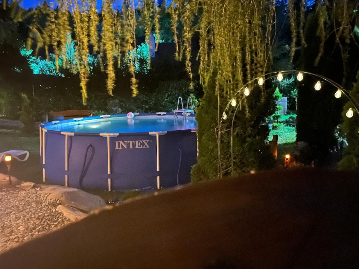 Casa Lunii with a wonderful view of the mountains has a maximum capacity of 4-6 people and consists of two bedrooms with their own bathroom, an open-space living room with an extendable sofa and a fully equipped kitchen. It has a barbecue area, its own hot tub, and during the summer the generous swimming pool is only good for cooling off. Parking is free in the yard of the location, which is large and full of greenery.