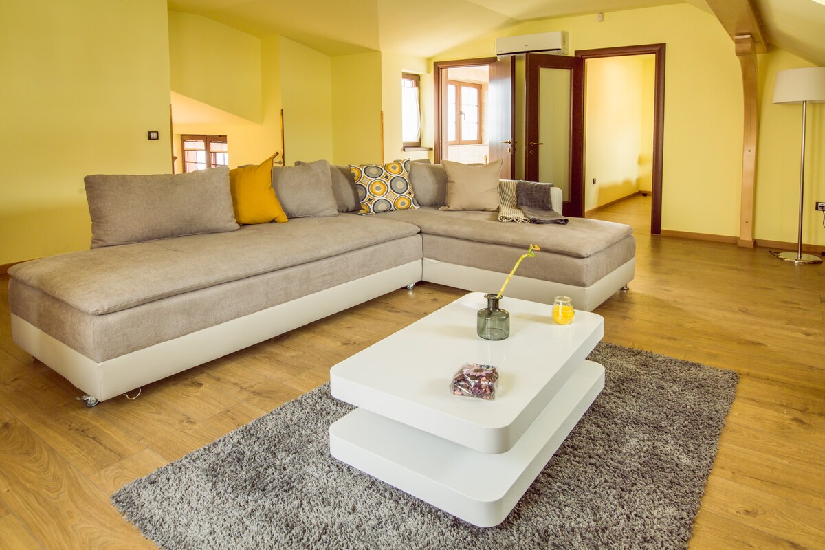 Welcome to our luxurious apartment in Sibiu! The unit is beautifully furnished with modern and comfortable decor, ensuring a memorable stay. Our guests can enjoy a private sauna, perfect for relaxing after a long day of sightseeing. But what really sets us apart are the breathtaking views of the historical center. You can enjoy a cup of coffee or a glass of wine while taking in the amazing scenery from the comfort of your own home. Book now and experience the best that Sibiu has to offer!