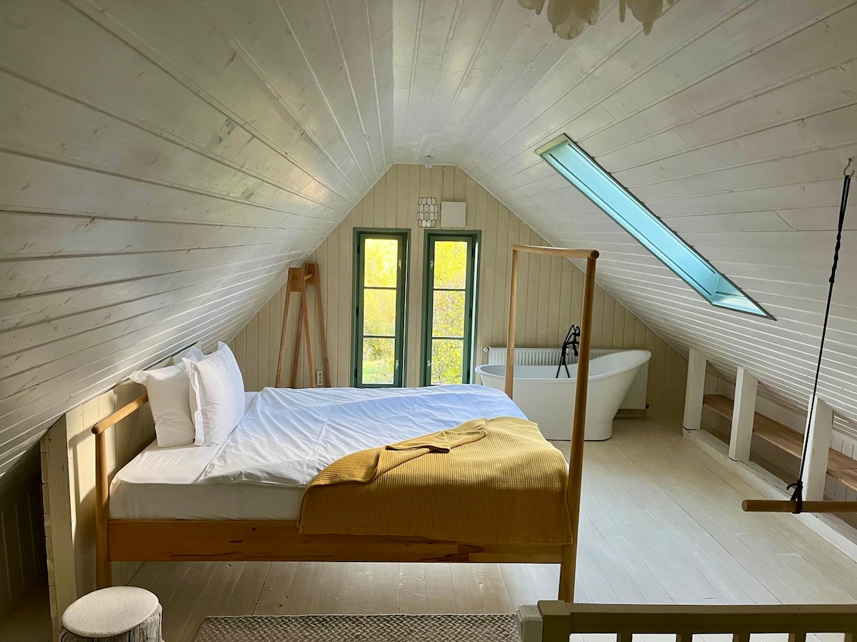 Trăiește o experiență de neuitat pe malul râului de munte, unde liniștea naturii se îmbină cu confortul absolut. Jacuzzi privat, saună panoramică cu vedere spre apă, pat suspendat deasupra râului și o terasă spectaculoasă cu grill — totul doar pentru adulți, într-un cadru intim și rafinat.