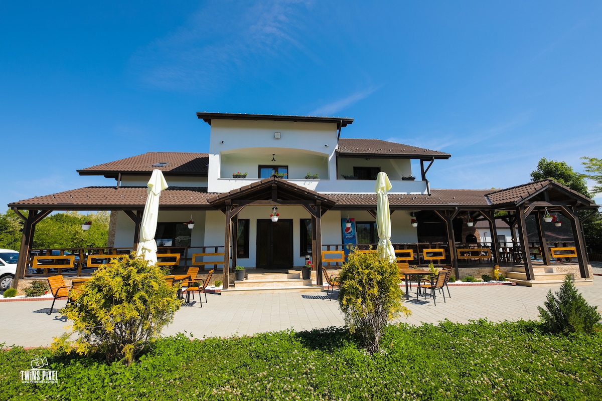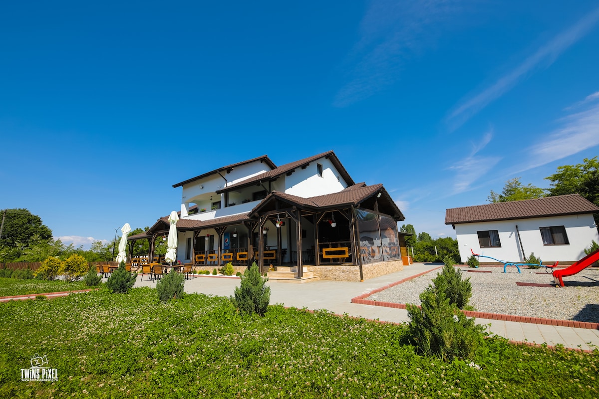 Bucură-te de o vizită de neuitat în această locuință unică cu mic dejun inclus .utilizarea saunei sau a ciubarului este contra cost . Turul cu ATV urile se face cu programare prealabilă de preferat cu o zi inainte ( contra cost )