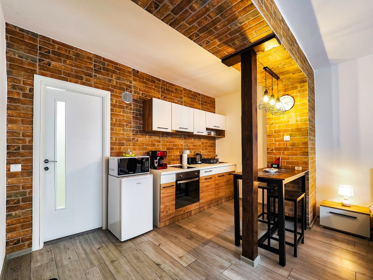 The apartment is situated on one of the oldest streets of Sibiu, called also "the most beautiful street in Sibiu". One bedroom, more like a studio, open space with a special shower, free wi-fi and TV, the apartment provides all the utilities needed for a comfy stay in Sibiu. The bathroom is separated from bedroom with a glass wall, so this make the design unique in Sibiu. Easy acces to the center of the city, Big Square, near restaurants and coffee shops, it's perfect for couples.