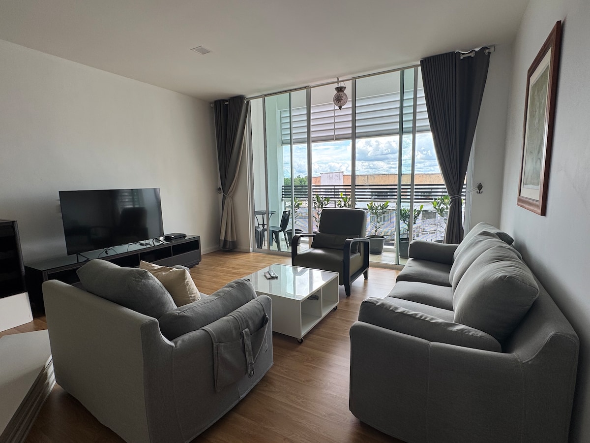Tower B *Fully Furnished Bedroom 1 -1 queen bed Bedroom 2-1 queen bed Bedroom 3-1 single bed 1 extra single mattress 2 bathrooms Refrigerator Washing machine Electric stove , cooking & kitchen utensils Air-conditioner Hair-dryer Television