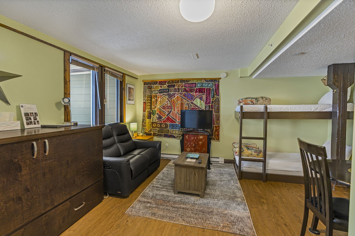 The perfect TRUE ski-in/ski-out ground floor studio unit, that is close to the hot tubs, common room, laundry room, waxing room & parking. Ski right from your door, and to your door! The unit has great views of the hill and is an easy walk to Tube Town, skating on Brewers Pond and SilverStar Village, and offers easy access to snowshoe and cross-country ski trails. There is free parking, Smart-lock Self-Check-in, coffee and tea supplies, and is well stocked with condiments and pantry items.
