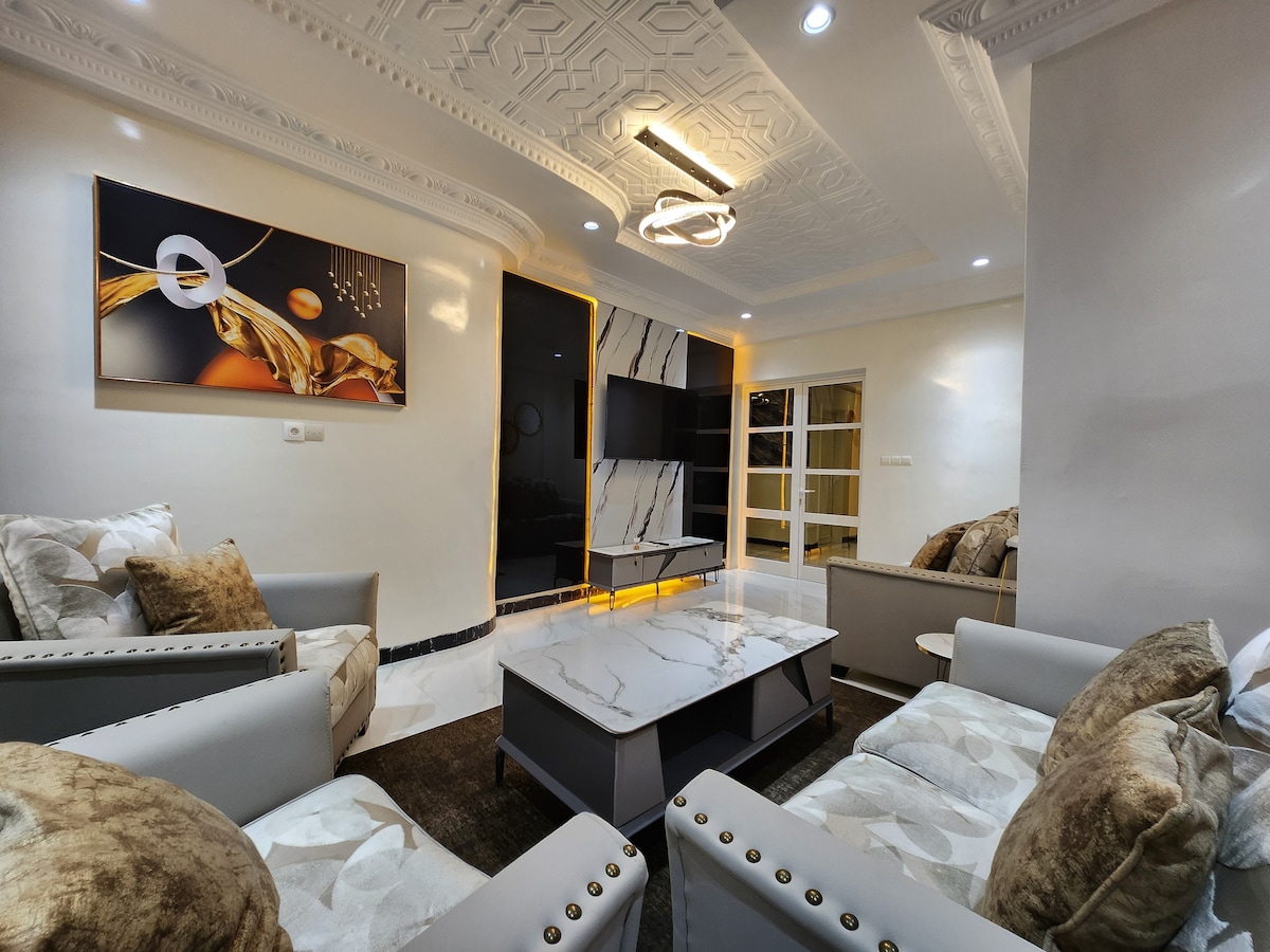 Bienvenue dans notre luxueux appartement tout neuf, situé en face de l’arrêt du Bus Rapid Transfer ( BRT ) de liberté 6, pensé pour offrir une ambiance cosy et apaisante. De la baignoire hydromassante, à la cheminée électrique en passant par les enceintes du plafond, tout est choisi avec attention . Le logement a également un joli patio privé pour savourer un café le matin, un verre en fin de journée Notre appartement vous offre tout le confort nécessaire pour un séjour inoubliable