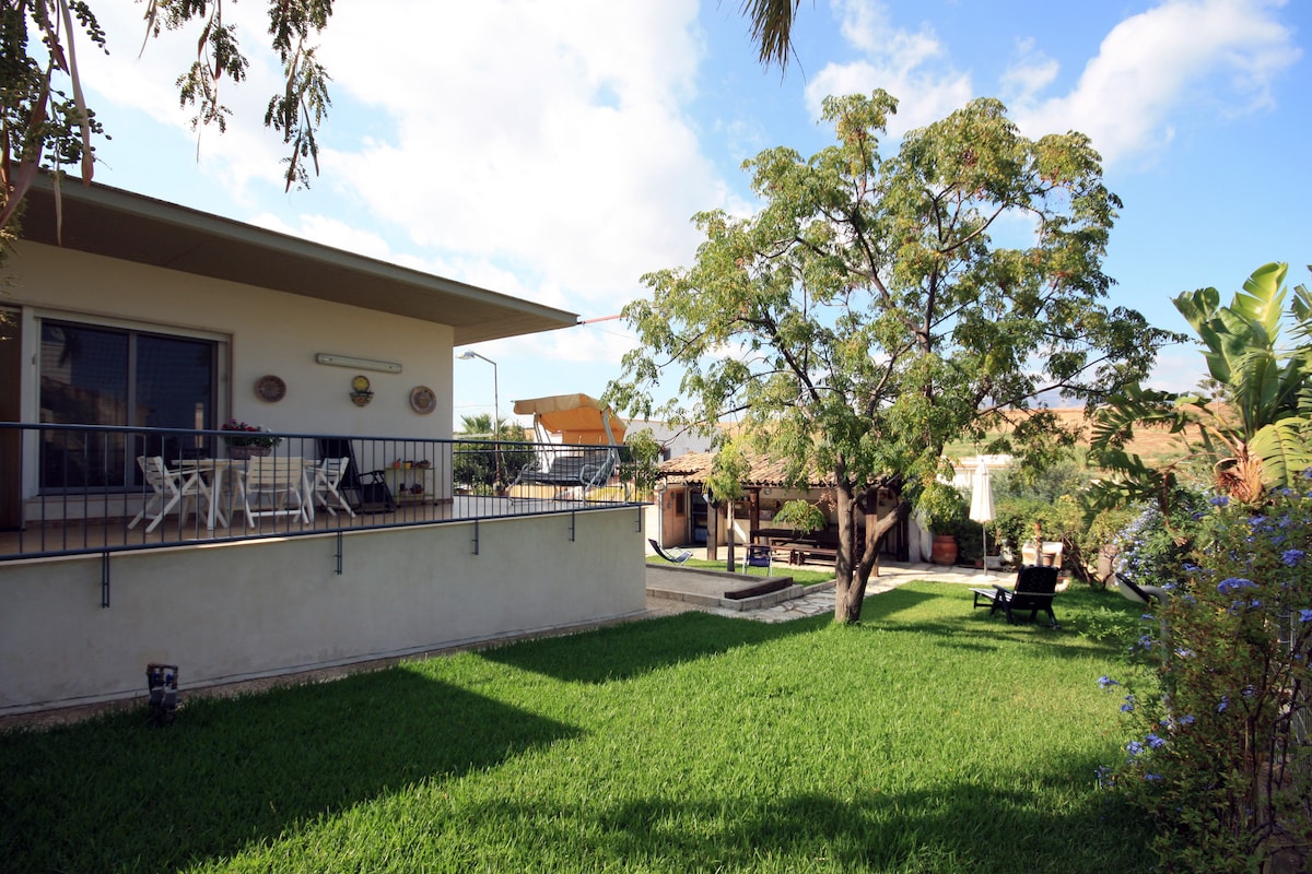 Splendida villa con verande e giardino a 600m dal mare! Un luogo tranquillo dove soggiornare in pieno relax. Dotato di ogni comfort: 2 camere da letto, 1 divano-letto in soggiorno, 2 bagni con doccia appena ristrutturati,cucina interna, cucina esterna, barbecue, verande, dondolo, condizionatore.