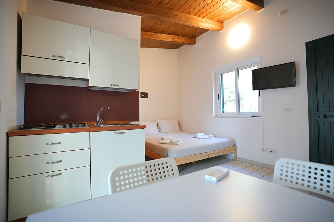 Belli e luminosi, i nostri Bungalow vi sorprenderanno per l'accogliente soggiorno e per la splendida cucina. Dotati di tutti i comfort per rendere la vostra vacanza più comoda. Nella struttura che ospita i bungalow sono presenti un parco giochi per i bambini, una sala massaggi, una zona lavanderia. Posto auto. Free WiFi. Accesso diretto all'antistante spiaggia libera. Per garantire un soggiorno piacevole e senza inconvenienti per tutti, ti chiediamo gentilmente un deposito cauzionale.
