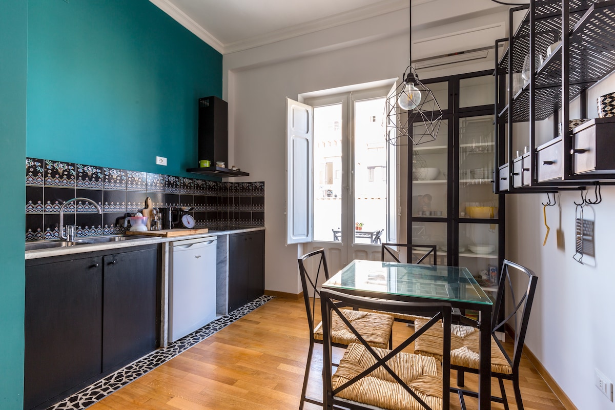Grazioso ed elegante appartamento nel cuore del centro storico di Catania. Recentemente ristrutturato, unisce tradizione e modernità: salone e bagno alla moda convivono con una camera con mattonelle in terracotta Siciliana e soffitto a volta degli ultimi anni del' 800. Si trova accanto ai principali punti di interesse: Teatro Romano (120m), Castello Medievale Ursino (400m), Cattedrale di Sant'Agata (450m) in Piazza Duomo, Piazza Università (550m), Anfiteatro Romano (800m), Teatro Bellini (900m)