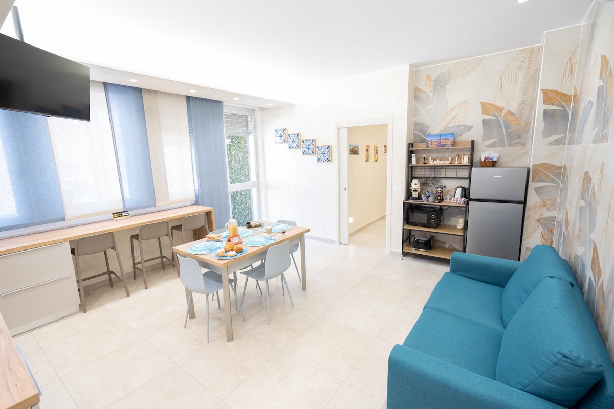 Un appartamento dai toni delicati e luminosi, situato nel cuore del centro storico di Palermo. Un rifugio elegante e accogliente, perfetto per coppie, famiglie o amici che desiderano vivere la città in un’atmosfera autentica. L’ingresso si apre su uno spazio con cucina e tavolo da pranzo. Da qui si accede a una spaziosa camera da letto, dotata anche di un divano letto. Completa l’appartamento un bagno moderno e funzionale, pensato per garantire praticità e comfort.