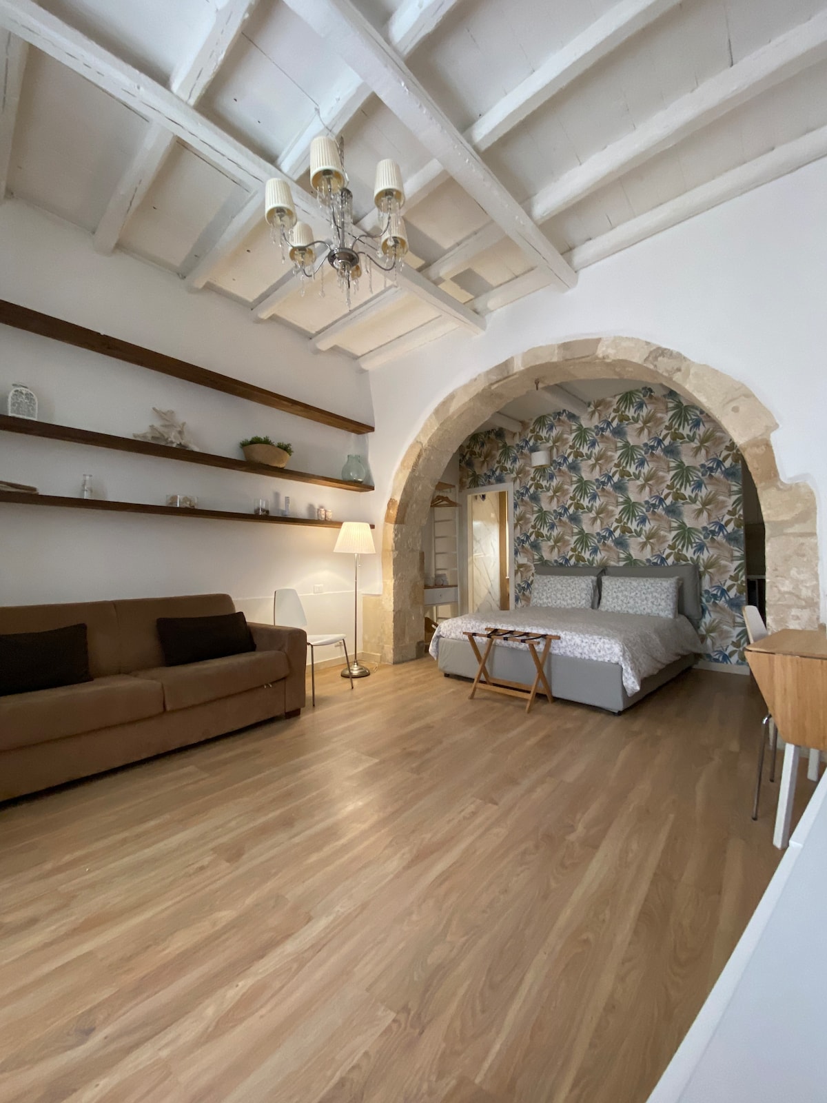 Dionisio 6 is an elegant, cozy and warm ground floor apartment, located in the Jewish neighbourhood of "La Giudecca" in the heart of ORTIGIA, just 50 mt from the sea. Our loft has been completely renovated in 2021 through a careful conservative restoration using the highest quality materials in order to respect the characteristics of the ancient building in which it is located. Functionality and design have been mixed with the antiquity of the architectural structure.