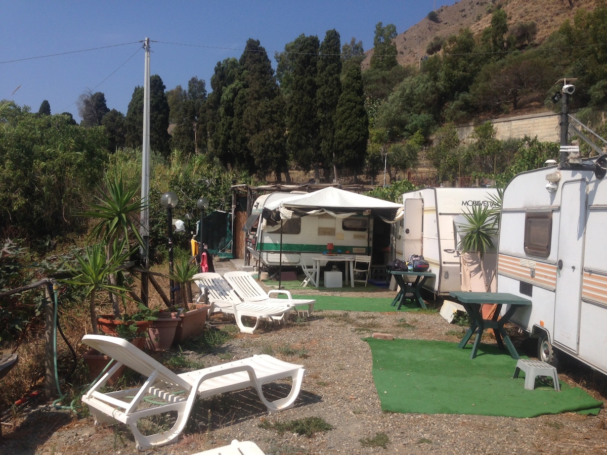 Roulotte nei pressi di una splendida spiaggia " Fondaco Parrino" tra Taormina e la vicina Calabria. La roulotte e' vicino al mare , Bagno privato dentro la roulotte e Bagno esterno in comune , cucina fuori , barbecue, lavatrice, tavolo per banchetti, inoltre doccie. Nella mia struttura non c’è possibilità di posteggiare sia l’auto o la moto, si può raggiungere ESCLUSIVAMENTE solo con bus e la fermata ė di fronte, oppure col taxi Posto NON adatto per bambini e persone grandi. presenza di gatti.