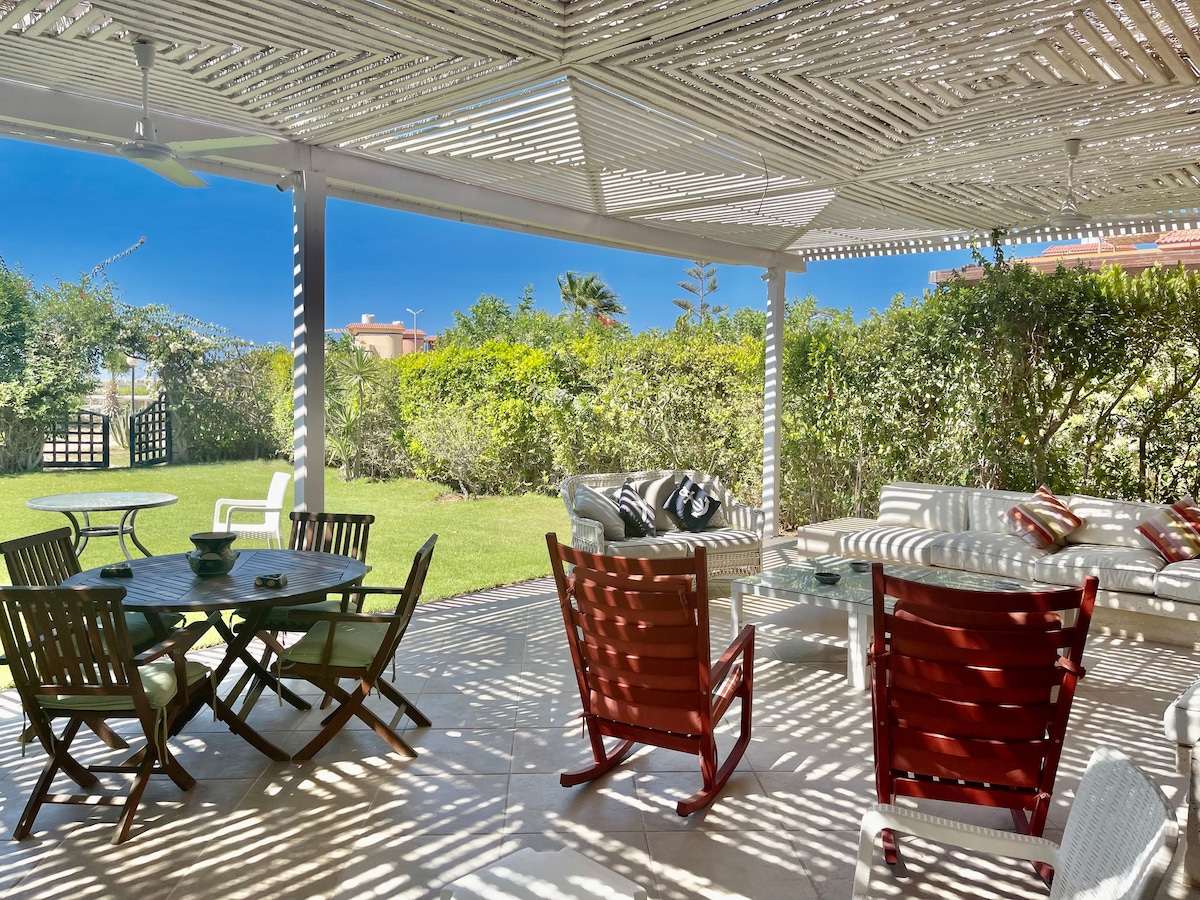 Steps to the beautiful Marina, enjoy the walk and all types of restaurants and cafés. The apartment has two queen size beds, fully equipped kitchen and big bathroom. A family of two adults and two kids will be enjoying the beach and swimming pools. You can use Marassi golf cars to move around so you don't need your car!