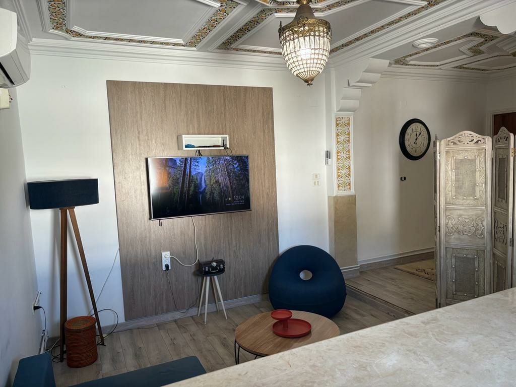 Un intérieur qui célèbre l’authenticité et qui permet d’avoir un espace de vie unique Un appart décoré avec des objets artisanaux qui racontent une histoire, chaque pièce artisanale contribue à l’originalité de notre espace. Appart situé aux Jardins de Carthage à 15mn de l’aéroport 5mn du lac 2 et du centre commercial Carrefour la Marsa, proche de toutes commodités, la Marsa, Carthage, la Goulette Appart dispose d’une place de parking au sous-sol, fibre optique, smart TV, un coin bureau