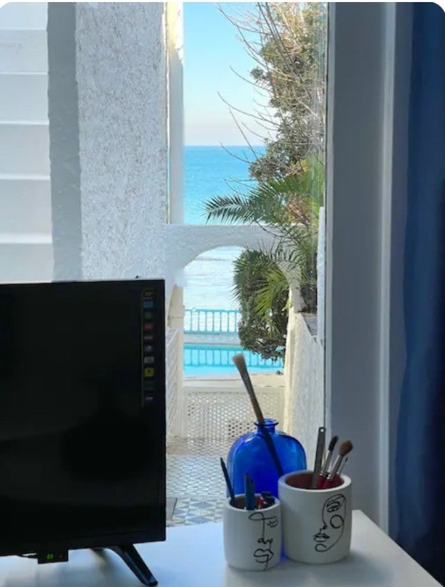 On the seafront, on the Marsa corniche beach. 5 minutes walk from the city center and close to all amenities. S 1 Completely renovated (May 2021), it consists of 2 living rooms + a bedroom + a bathroom with walk-in shower and toilet. You will have a modern equipped kitchen which opens onto a patio. A unique house with 2 living rooms + 150m² of terrace facing the sea, not overlooked. It is possible to bring the car into the garden. (arrival after 8 p.m. possible)