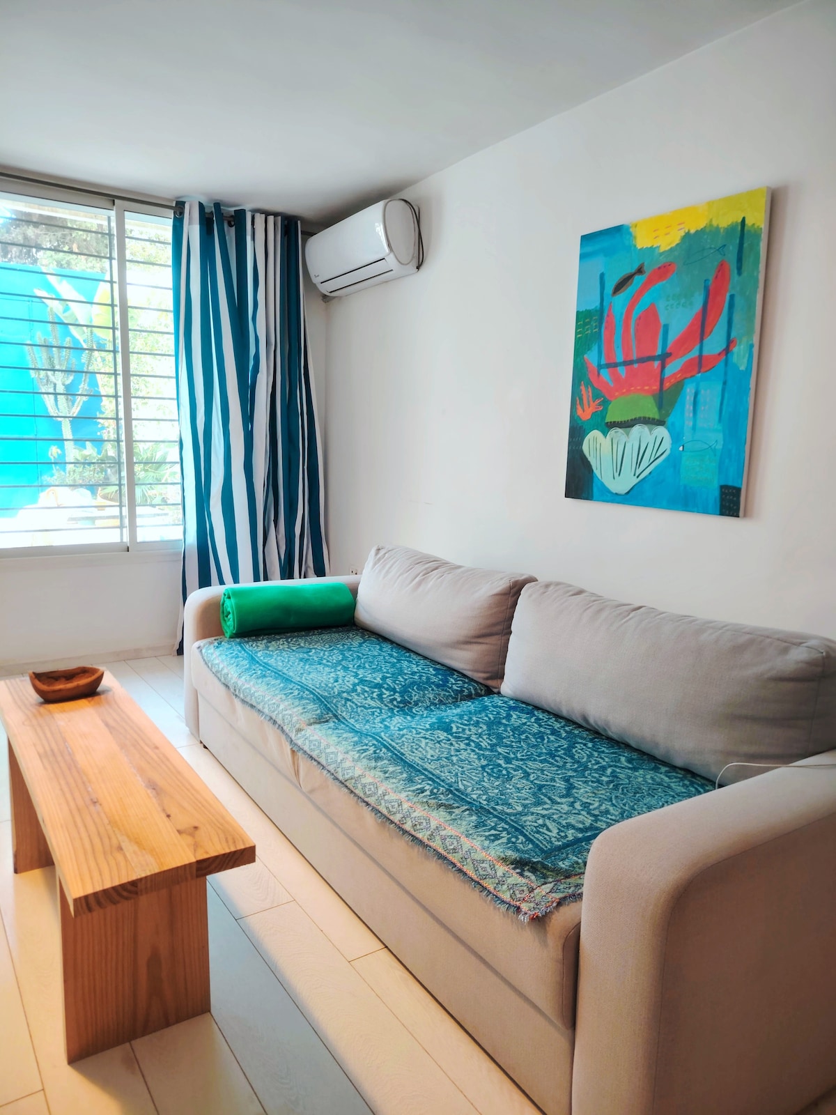 Looking for a seaside getaway? Discover this charming studio in La Marsa, ideally located near the town center with direct access to the beach. Fully air-conditioned for your comfort, it includes a spacious bedroom, a cosy living room, a kitchenette, a microwave, a TV, a bathroom with shower and toilet, a Nespresso machine, a kettle and a fridge. Rental of 2 paddles, 1 3-seater canoe and reservation of a sea-view BBQ area, for unforgettable moments.