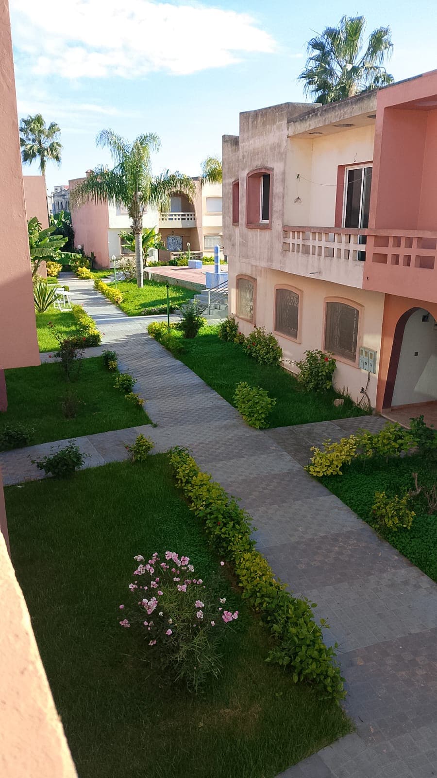 Bright Hacienda Apartment - 300m from the Sea ✨ Enjoy a family stay at Club de Vacances Hacienda, El Jadida, just 300m from the beach! 🛏️ 2 comfortable bedrooms. 🛋️ Living room with TV and dining area. 🍳 Fully equipped kitchen. 🚿 Modern bathroom. 🏊♂️ 2 supervised pools. 🅿️ Free parking. 🛎️ 24/7 security. Quiet area, near shops. Note: No Wi-Fi. Perfect for family vacations! 🌊