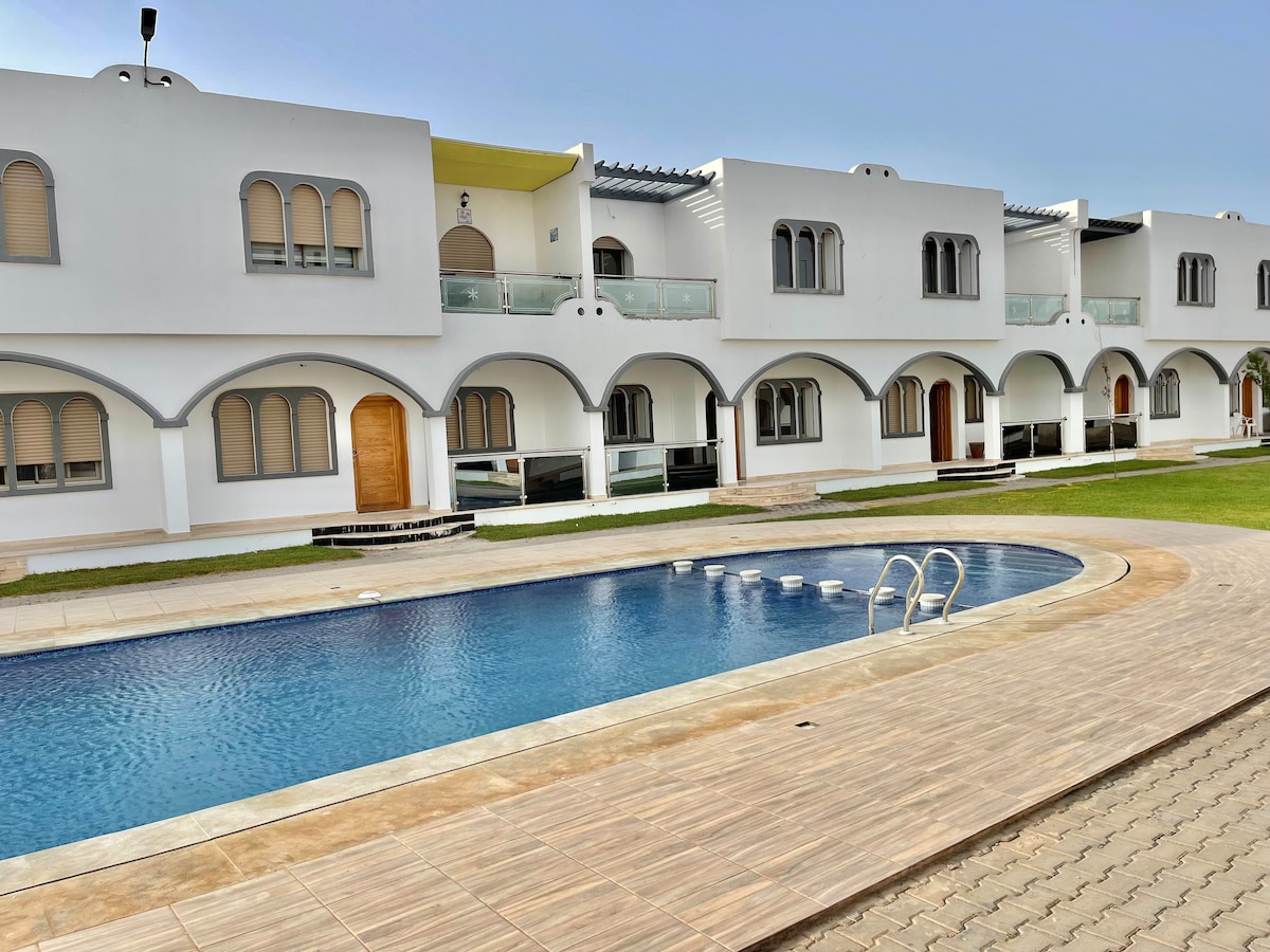 Duplex bien meublé avec tout le confort pour vous reposer. Cuisine bien équipée. Résidence sécurisée et très bien entretenue avec piscine. La plage sauvage est à 3minutes et la plage de Sidi Bouzid à 4 min en voiture. Environnement : route bien goudronnée, café restaurant la plage avec vue magnifique sur la mer où vous pourrez prendre un bon petit déjeuner après votre marche matinale. Plusieurs café restaurant à proximité.