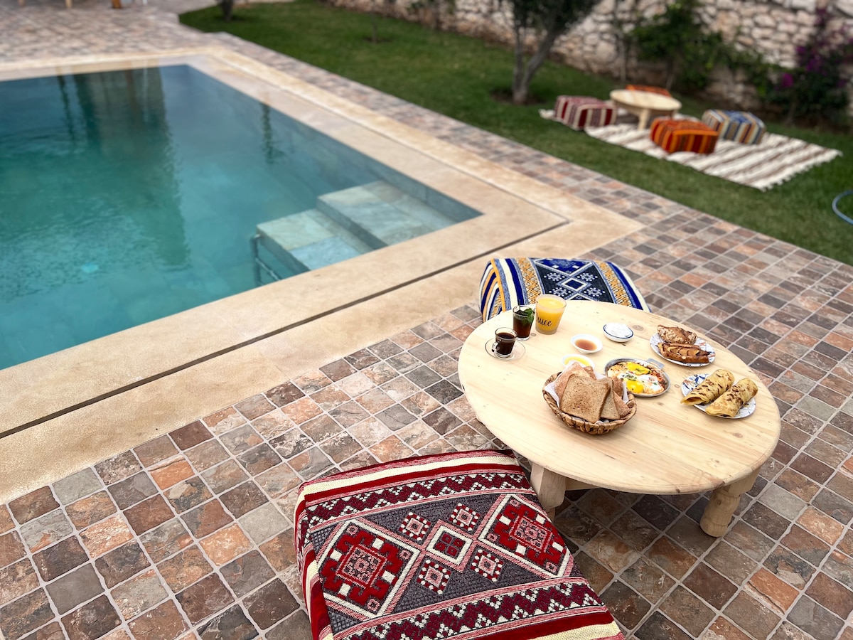 Auberge sur la superbe plage de Sidi Kaouki au Sud d'Essaouira. Nous vous proposons un logement en B&B dans une chambre double sur patio ensoleillé avec salle de bains privée.