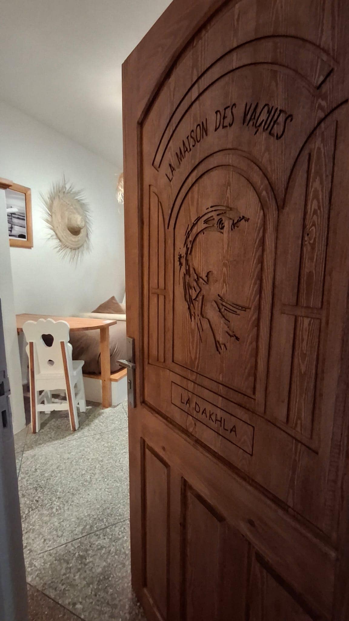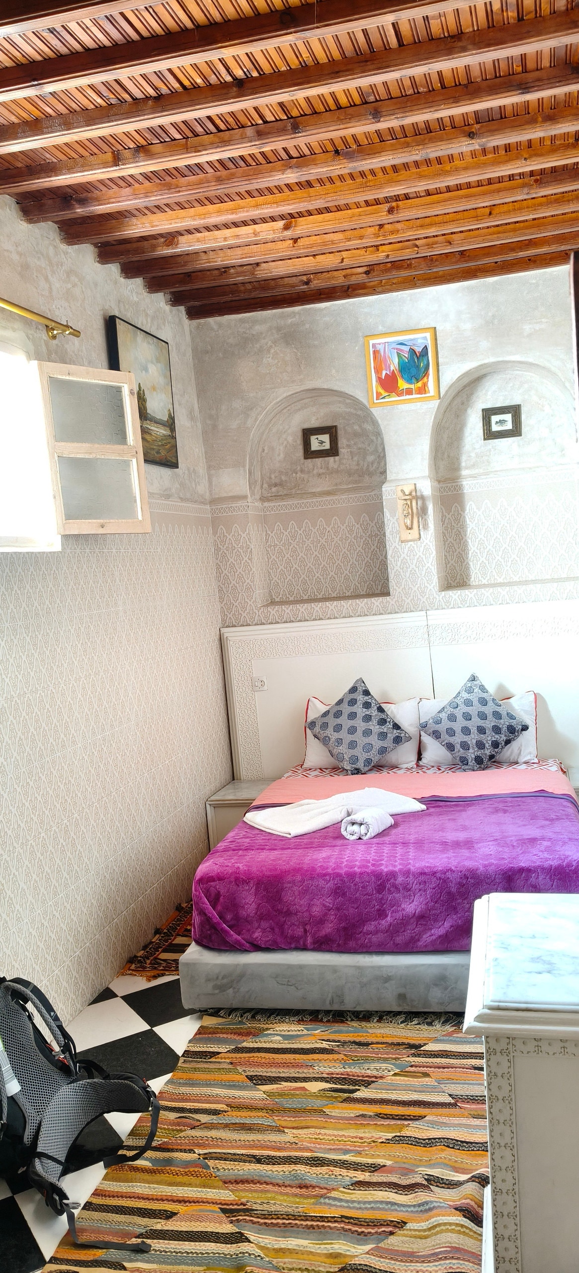 Chambre La Vague - La Maison des Vagues est un hôtel familial à proximité de la plage de Sidi Kaouki. Idéal pour séjourner en famille ou entre amis pour un séjour glisse (équipement prévu pour entreposer votre matériel). Vous pourrez profiter du restaurant de l'hôtel, vous détendre dans sa piscine (chauffée du 15 mars au 15 octobre) et admirer le coucher de soleil depuis le toit ! Nous avons 13 autres chambres à vous proposer ****Petit déjeuner inclus