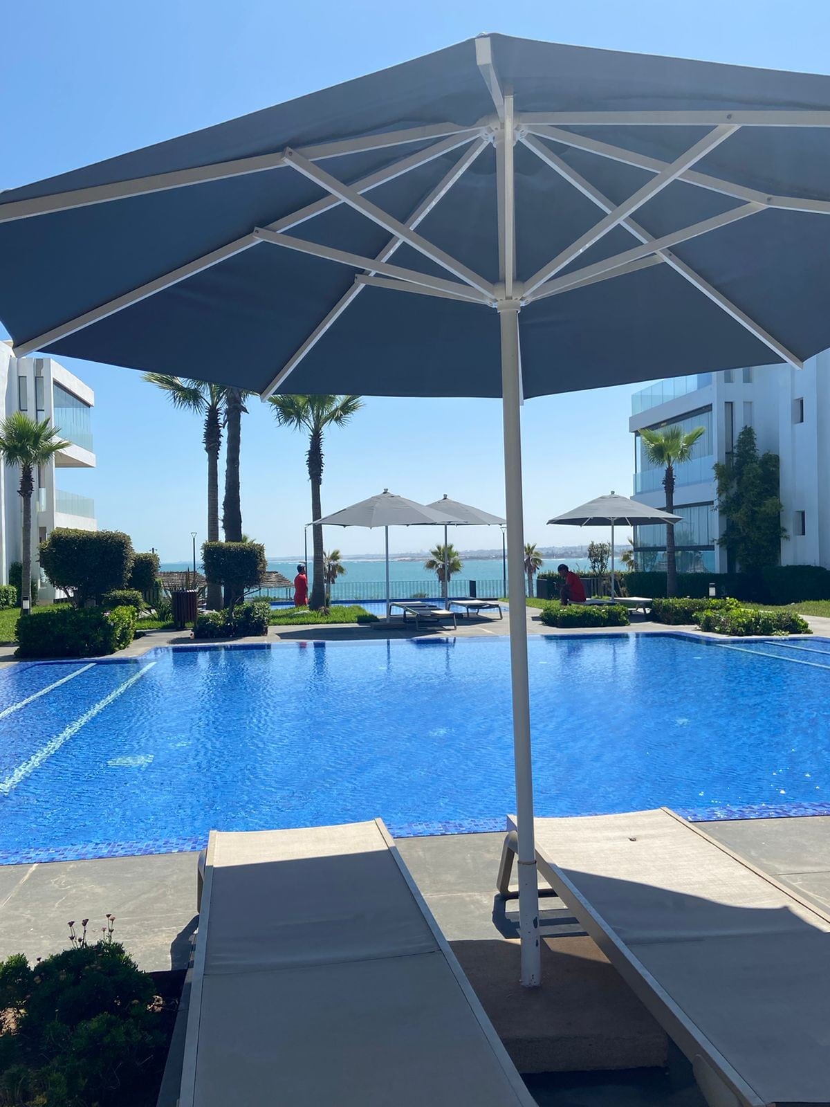 Appartement de standing , situé à seulement 200 mètres de la mer et à 20 minutes de Casablanca. Ce luxueux logement comprend un jardin privé avec jacuzzi, ainsi que l'accès à un terrain de football et un terrain de basket. Deux grandes piscines sont également disponibles. La cuisine est entièrement équipée, et l'appartement est doté d'une télévision intelligente. Ne manquez pas cette opportunité de vivre dans le confort absolu près de la mer.