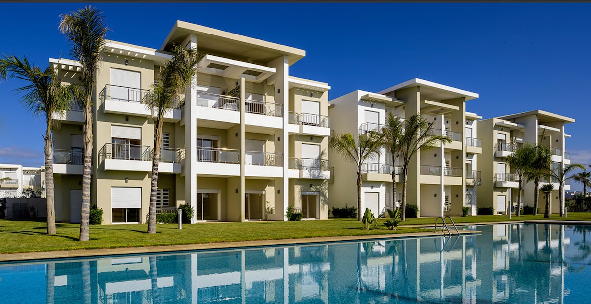 À seulement 30 minutes de Casablanca et à 5 minutes à pied de la plage Tamaris 2, je vous propose un appartement de haut standing pour un séjour inoubliable. Grande superficie, une vue dégagée et sans vis-à-vis, ce logement vous offre tout le confort et la tranquillité dont vous avez besoin : deux piscines, des espaces verts, des aires de jeux pour les enfants et des terrains de sport, ainsi qu’un parking sécurisé au sous-sol pour votre véhicule. Le tout dans une résidence calme et sécurisée.