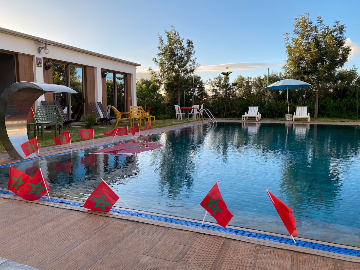 Vivez le luxe à Dar Bouazza ! Suite parentale avec balcon donnant sur le jardin et deux piscines (remplies en été) avec salle de bain privée. Salon spacieux avec TV, Netflix et Wi-Fi pour des moments relaxants. Chambre avec 2 lits simples, cuisine rouge moderne ouvrant sur terrasse privée face à la mer, deuxième chambre avec TV, fauteuil confortable et balcon vue mer. Une seconde toilette et un joli couloir d’entrée complètent ce cadre raffiné et accueillant.