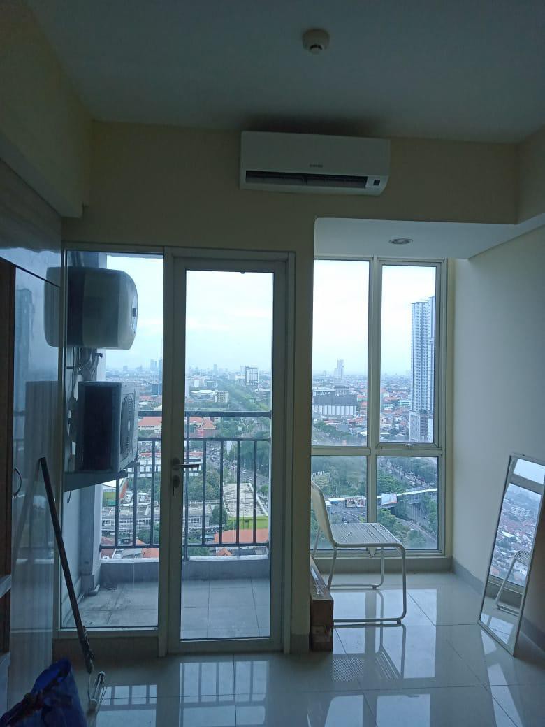 A corner apartment on the 5th floor, facing the city view of Surabaya. This apartment completed with 2 elevator. The unit is fully furnished with a homey interior design. Strategic location, close to the airport, close to the freeway which is connecting to various city in East Java, Malang, Mojokerto & Gresik, close to the UPN university, SIER (Industrial Estate) & Galaxy Mall as well as culinary destination in Surabaya.