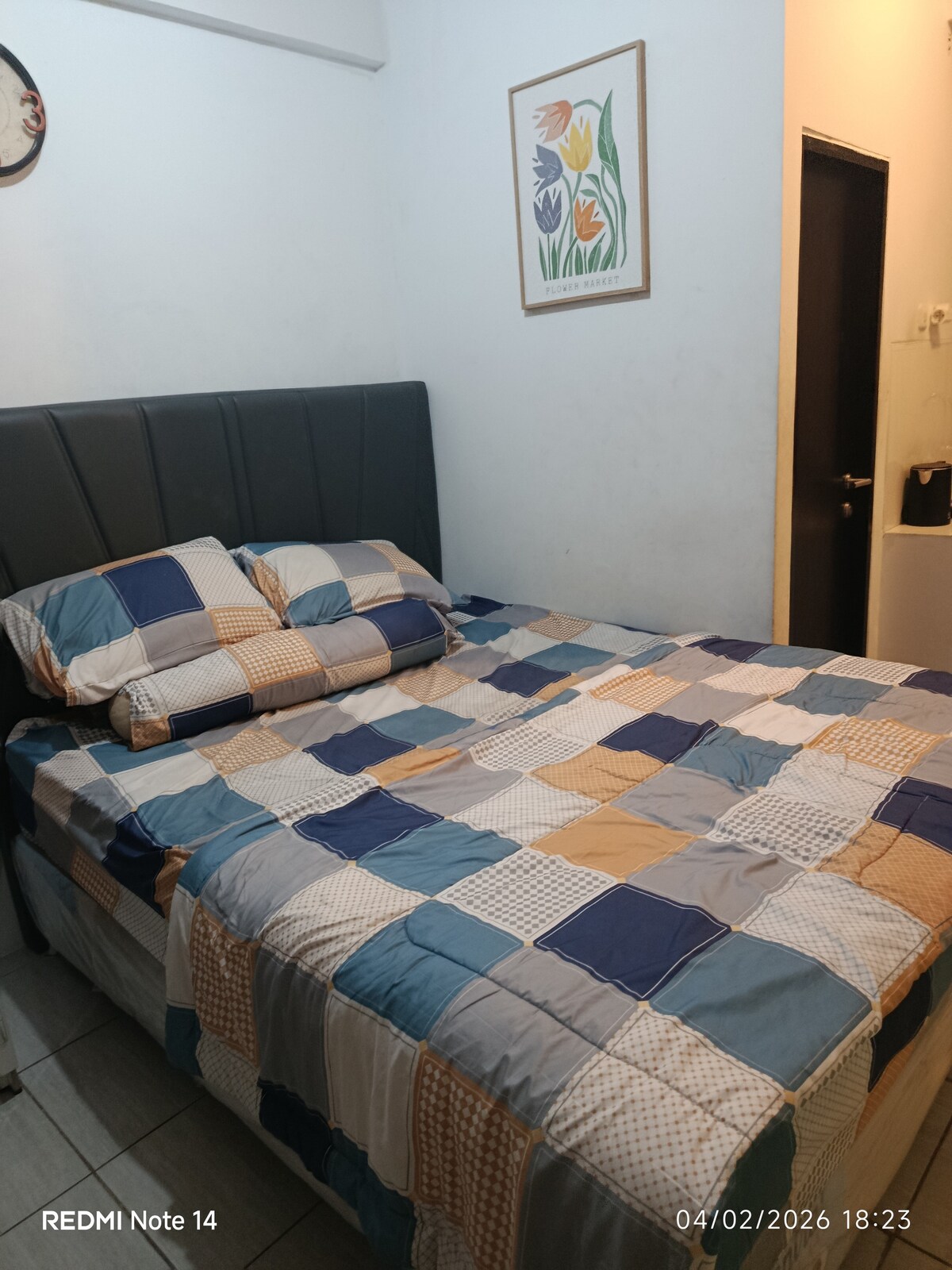 Relax with the whole family at this peaceful place to stay. Badroom : - AC - 1 King Size (180cmx200cm) - Desk - TV 32 Inci Digital + Google Smart + NETFLIX - Kulkas 2 Pintu - Lemari - Wi - Fi Dapur : - Kompor Listrik - Peralatan Makan minimalis - Rice Cooker +Steam +Majiger - Tempat Cuci Piring - Peralatan Kebersihan - Meja Makan Bathroom : - Water Heater ( Air Panas Dingin ) - Shower - Kloset Duduk - Eco Flush - Watafel - Shampoo + Sabun Cair - 2 Handuk Microfiber - HairDryer - Setrika