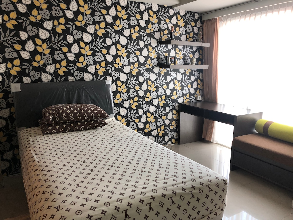 Studio apartment with industrial design, near the airport. location: 15 min to Juanda airport 20 min to city centre 10 min to CITO mall 10 min to Petra university walking distance to Sekolah pelayaran very modern place that includes: rice cooker kettle mineral water kitchen appliance free parking in front of the apartment. convenience store and laundy right below the apartment. travel and family friendly!!