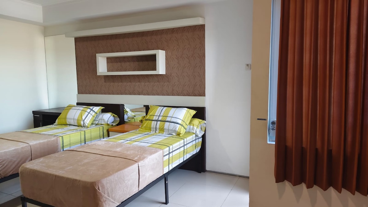 - Apartemen Baru dengan Fasilitas Hotel Bintang 3 (Kolam Renang, Playground, Lap. Basket, Gym, mini market & laundry) - Kamar studio berkonsep industrial dgn fasilitas lengkap, Smart TV+Netflix, full Wifi, Kitchen &Air Panas - Parkir Lobi Free, parkir basement berbayar - Lokasi strategis karena diapit oleh MERR & rencana tol OERR - 1 menit dari Gerbang Tol Tambak Sumur - 5 menit dari Bandara Juanda T1 - 7 menit ke Bundaran Waru & Jl. Ahmad Yani - 11 menit ke Transmart, CITO Mall & Galaxy Mall