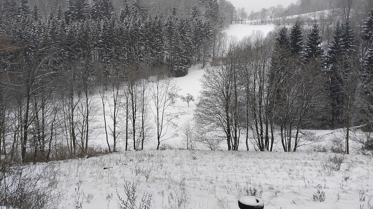 Schlittenfahren fast direkt vor der Haustür ohne das Auto zu bewegen und anschließend am 🔥 Holz Ofen 🔥 wieder aufwärmen! Winterdienst räumt täglich! Du wirst meine Unterkunft lieben wegen der absoluten Ruhe, umgeben von mehreren Quadratkilometern Wald, unserem frischem Quellwasser direkt aus der Leitung in dem Bungalow in 1A-Trinkwasserqualität und der Möglichkeit Dich einfach gemütlich vor dem Holz Ofen oder Lagerfeuer 🔥 zu entspannen! Der Bungalow ist 60m² groß und hat Küche, Bad & TV.