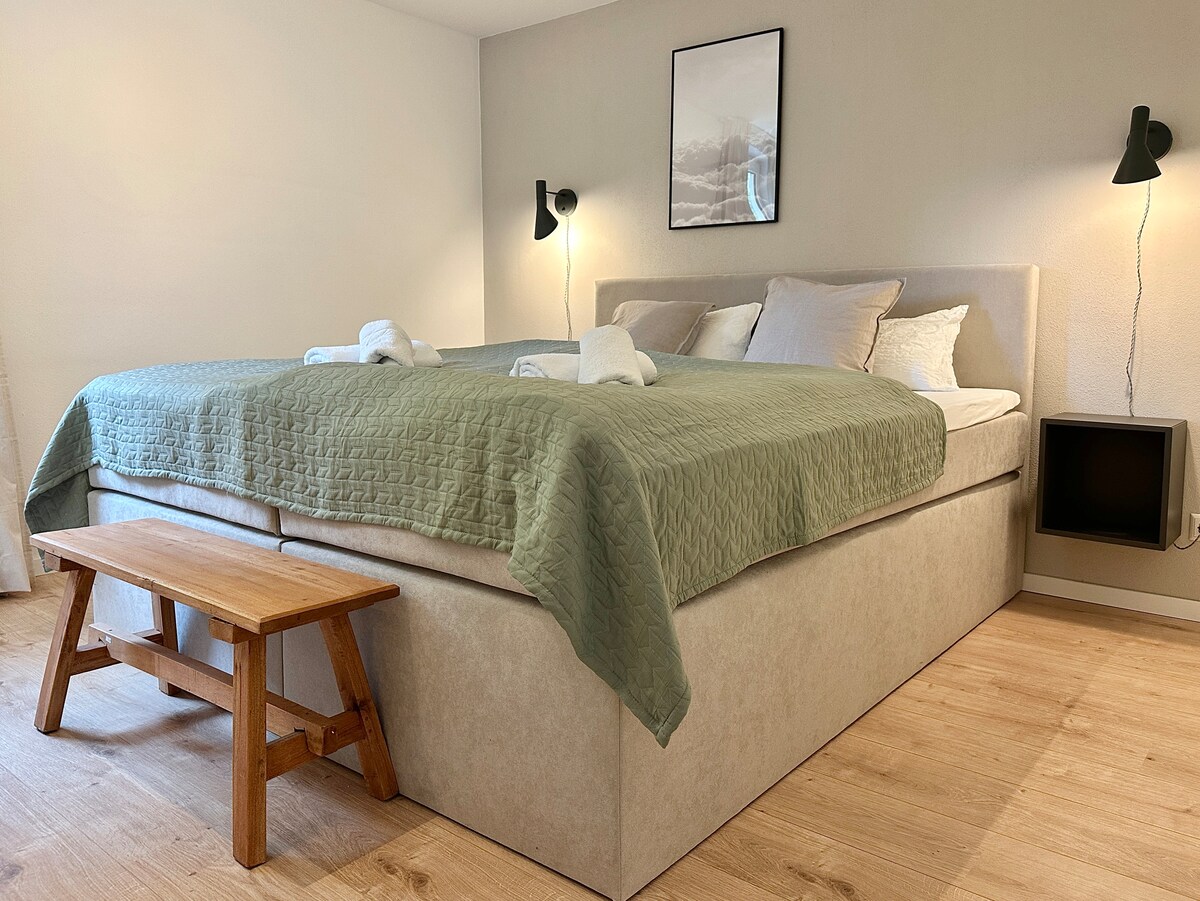 ✔️Platz für bis zu 8 Personen ✔️160 m2 auf zwei Wohnungen ✔️Separates UG mit eigenem Bad – perfekt für zwei Familien oder Generationen (abschließbar und autark nutzbar). ✔️3 Schlafzimmer mit bequemen Doppelbetten ✔️2 Wohnzimmer ✔️2 Küchen ✔️2 moderne Badezimmer ✔️Großer Balkon mit Bergblick ✔️Holzterrasse mit Gartenblick ✔️ Großer Garten zum Entspannen & Spielen ✔️ Fass-Sauna ✔️ Babybett 20 € / Hochstuhl kostenlos ✔️ Waschmaschine & Trockner (gg. Gebühr)
