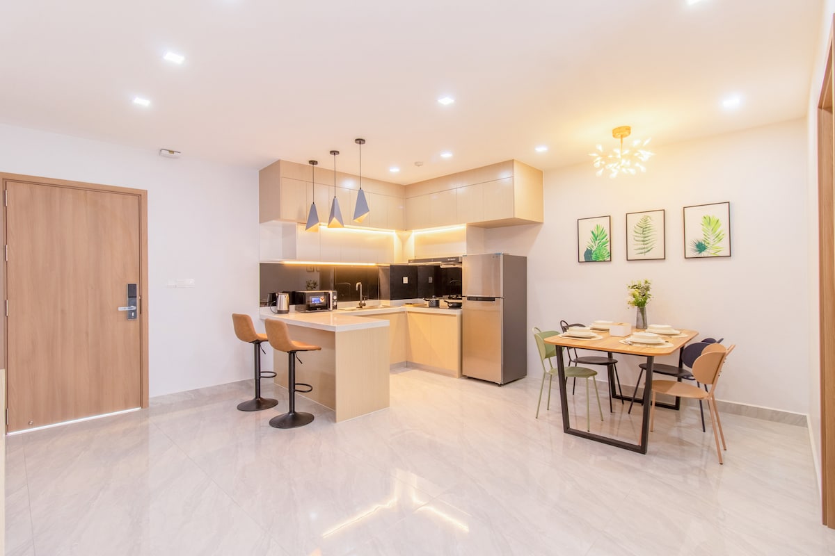 Situated in the center of Siem Reap. This area includes an international hospital, supermarkets, eateries, and bars. Moreover, it is a short 7-minute drive from Pub Street. Our 65 sqm One-bedroom condo can accommodate up to 2 adults comfortably. you'll have access to all the awesome facilities, including: - Sky Pool, Gym, and Garden - Kitchenware, including pots and pans - High-speed Wifi and a Working desk - Daily Housekeeping services - Parking facilities and round-the-clock Security