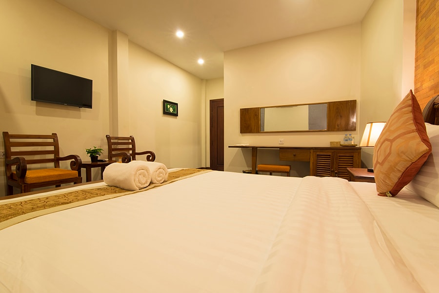 Reveal Angkor Hotel is the ancient and modern concept. rooms designed is purely a bit modern and our green garden is purely local and traditional concept. Reveal Angkor is reminding you the way how Khmer People living is. by staying here you not only get a comfortable rooms, visualizing beautiful garden, enjoy salt water swimming pool, testing our Delicious Khmer Foods. But experiencing Khmer Culture and Angkor History about Khmer people. we love to share those to our guests who interesting