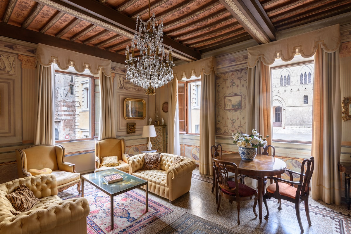 Appartamento nuovo appena ristrutturato, situato al piano 2 dello storico Palazzo Casini Piccolomini, nel cuore del centro di Siena, a 30 metri dalla celebre Piazza del Campo, dotato di ogni confort per offrire ai nostri ospiti un soggiorno indimenticabile. Renewed apartment, located on the 2nd floor in the historic Casini Piccolomini building, in the heart of Siena downtown, at 30 metres from the famous Piazza Del Campo, fully equipped for offering to our guests a great staying in our city .